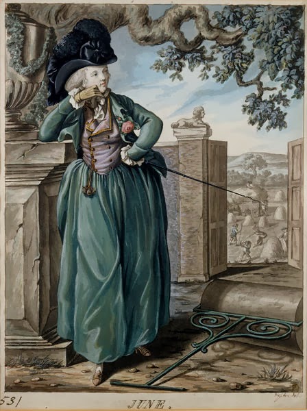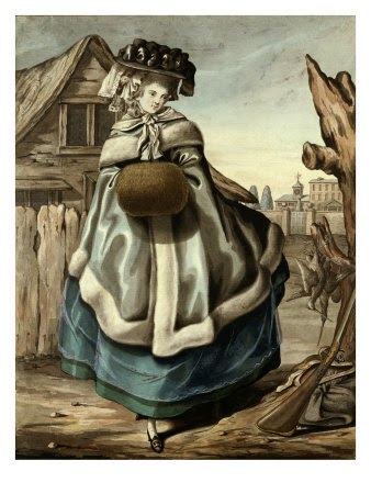 In around 1785, Robert Dighton, an English caricaturist, print-seller and actor, produced 12 allegorical representations of The Months. Each plate depicts a woman wearing an outfit and doing an activity that is appropriate for the month she represents. Here they are. As always, click on the pictures to enlarge them.